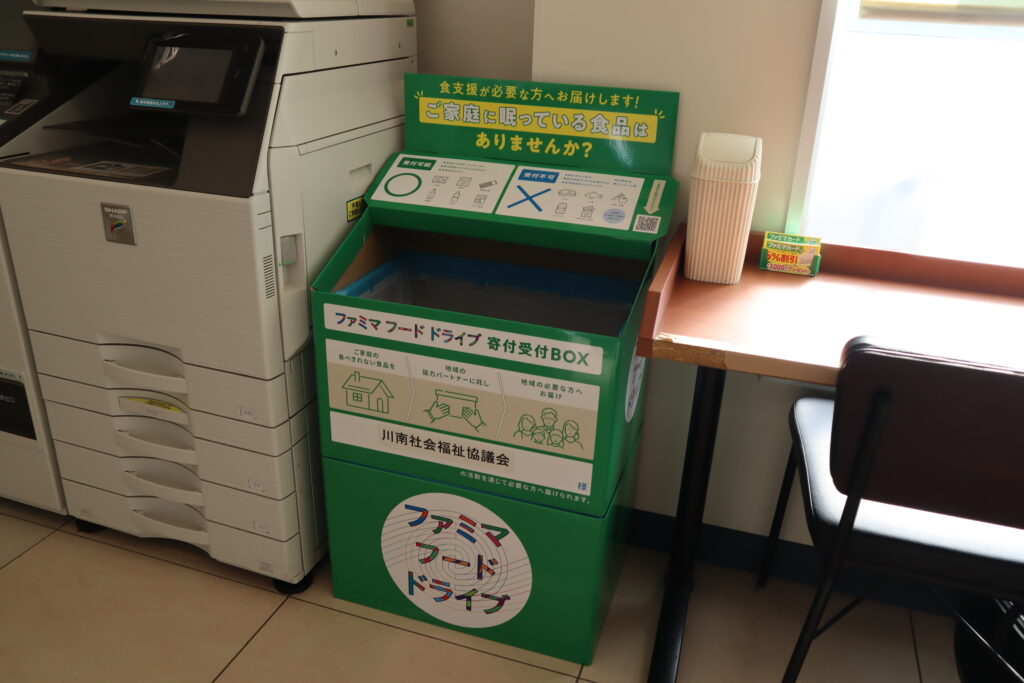 ファミマフードドライブとは、ご家庭にある消費しきれない食品をファミリーマート店舗に設置された回収ボックスにお寄せいただき、当会を通じて地域で食支援が必要な方々にお届けする取組です。