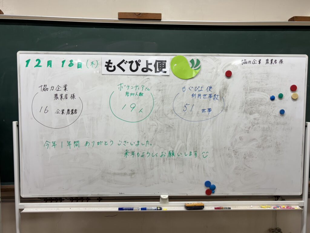 今年1年間、もぐぴよ便にご協力いただきました、企業・農業者の皆様、仕分け・配達ボランティアの皆様、誠にありがとうございました。