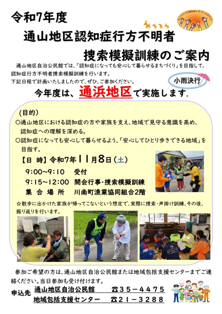 認知症行方不明者捜索模擬訓練開催のお知らせ